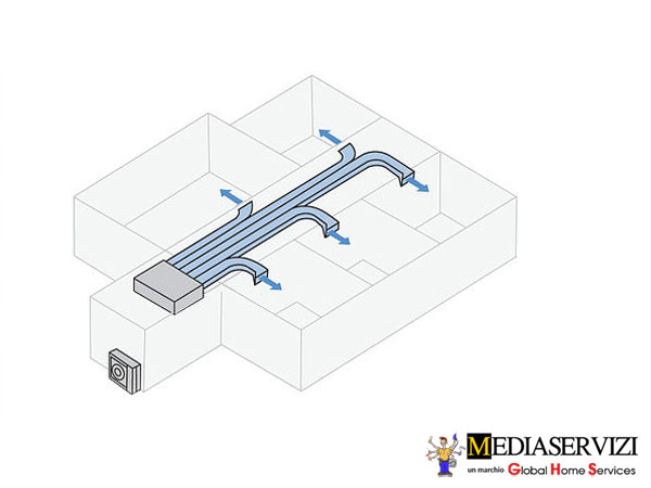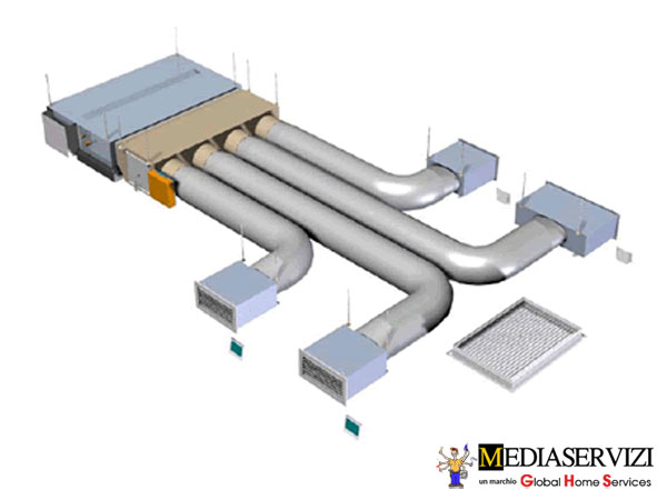 L’impianto di climatizzazione canalizzato è sempre più diffuso negli uffici, nei locali pubblici o commerciali e anche nelle abitazioni private poiché consente di raffrescare e riscaldare tutti gli ambienti con un’unica macchina interna. Consiste infatti in un impianto di tubature e canaline che raggiungono tutti gli spazi della casa e sono dotate bocchette nascoste da griglie da cui fuoriesce l’aria.