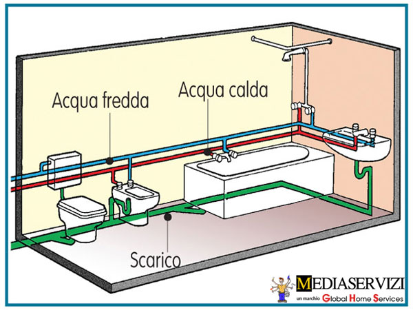 L’impianto idraulico completo per bagno comprende: