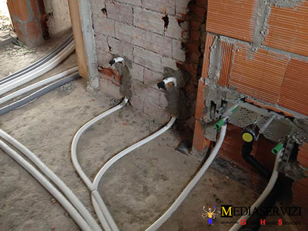 Il lavoro comprende le tracce a parete e la chiusura delle stesse, copertura tubi a pavimento con malta da muratura.