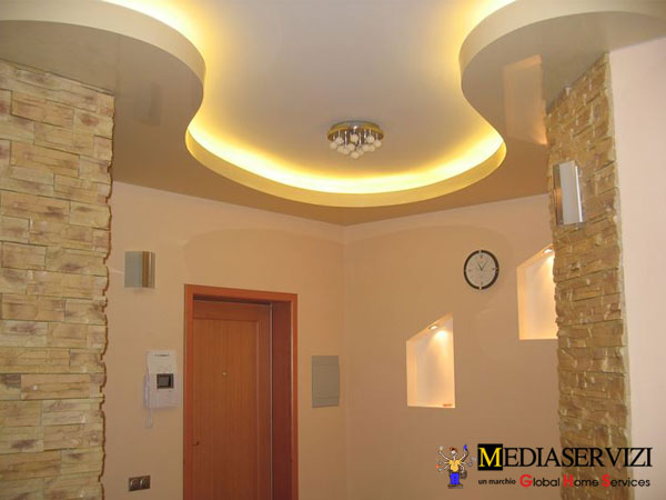 - È un’ottima soluzione se si vogliono nascondere imperfezioni o impianti, ad esempio di riscaldamento e condizionamento, senza abbassare l’altezza del locale. Può essere realizzata in fase di ristrutturazione consentendo il passaggio di cavi e tubazioni, con notevole risparmio sugli impianti.